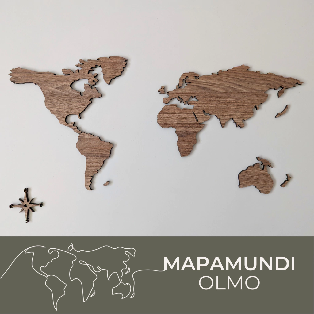 Mapamundi decorativo para pared en melamina enchapada en color Olmo.