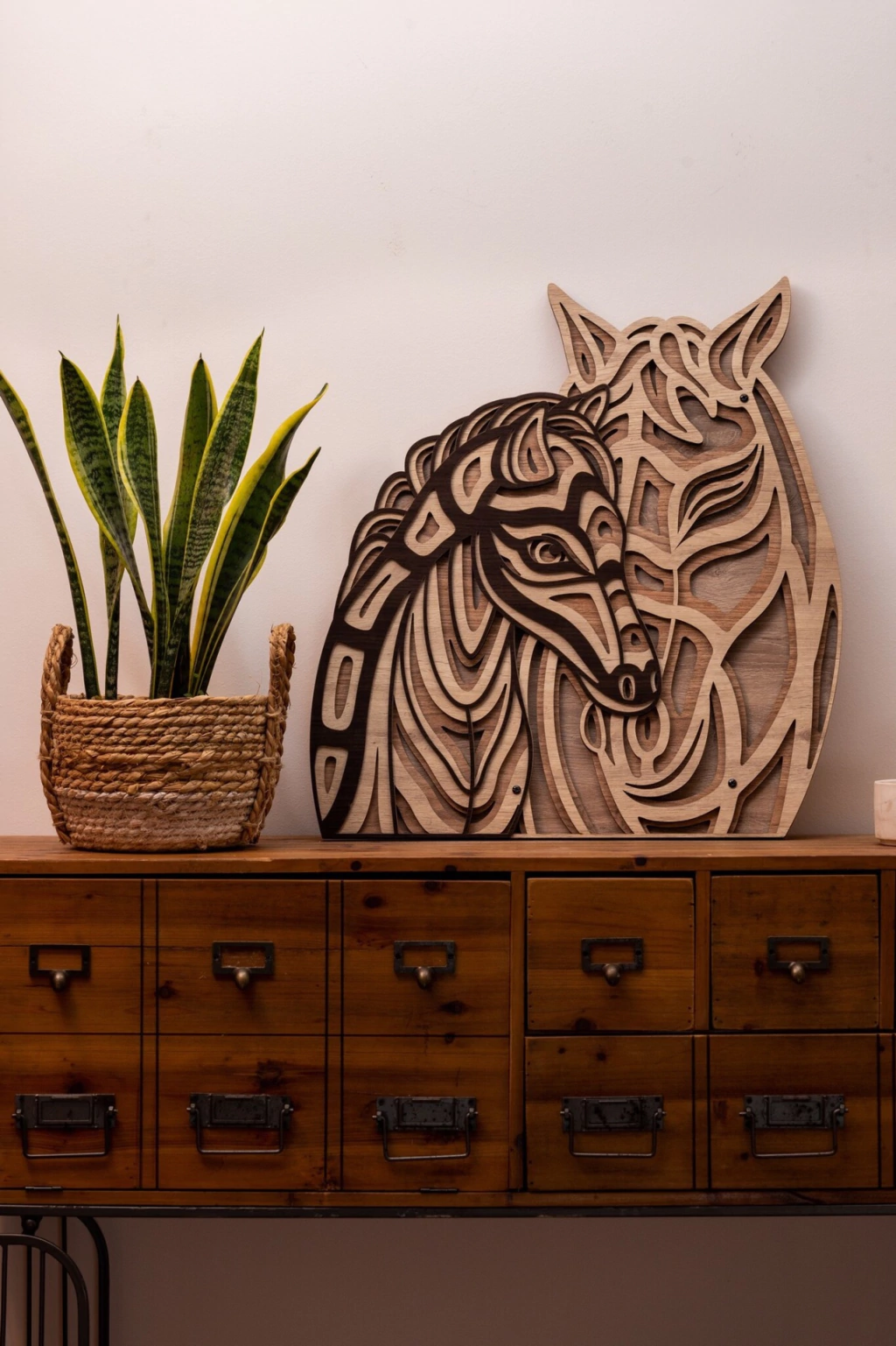 Totem en relieve por superposición de 4 capas de distintas maderas
