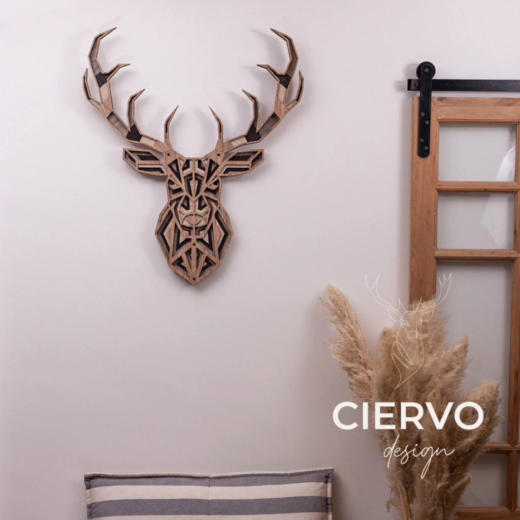 Totem en relieve por superposición de 4 capas de distintas maderas