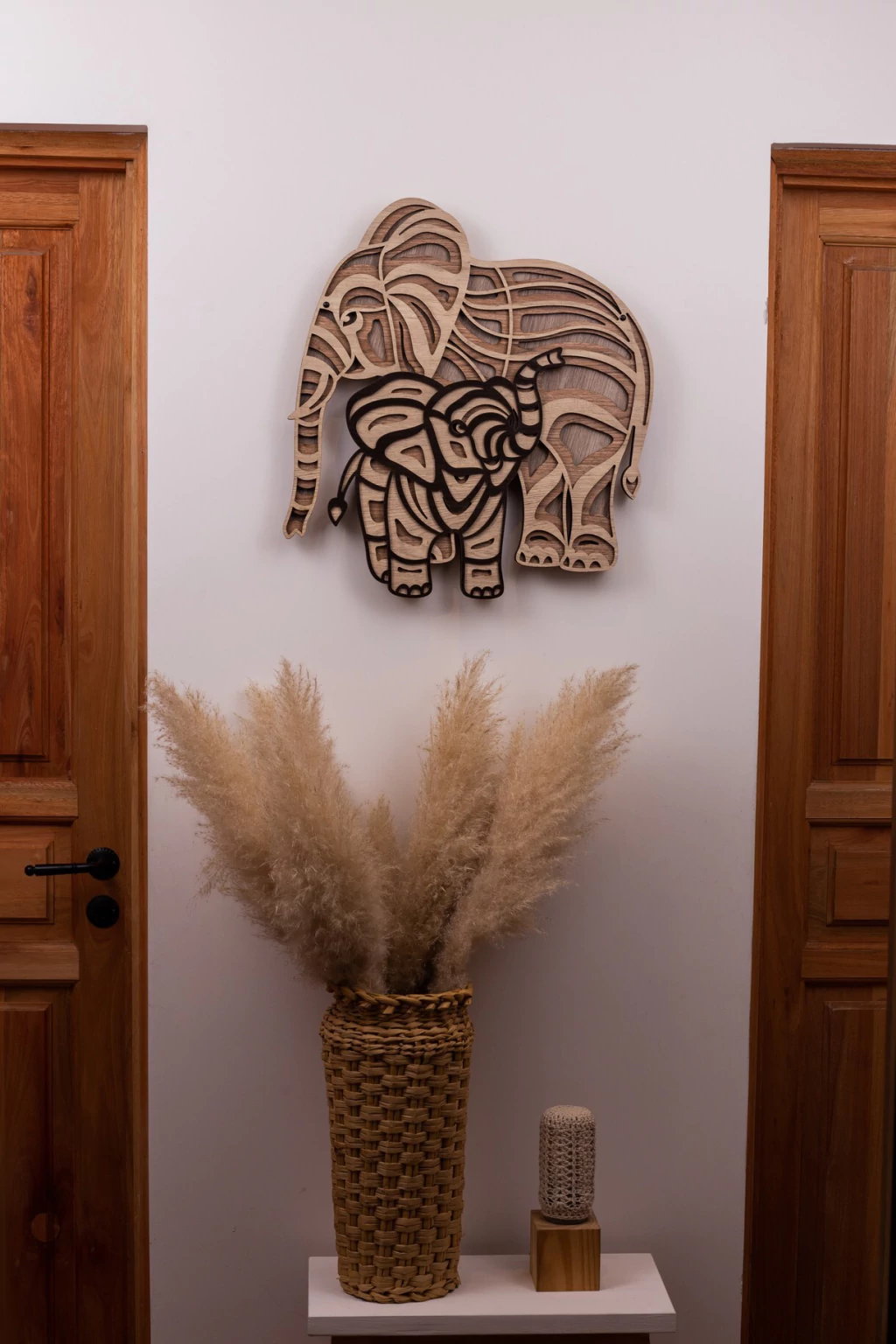 Totem en relieve por superposición de 4 capas de distintas maderas