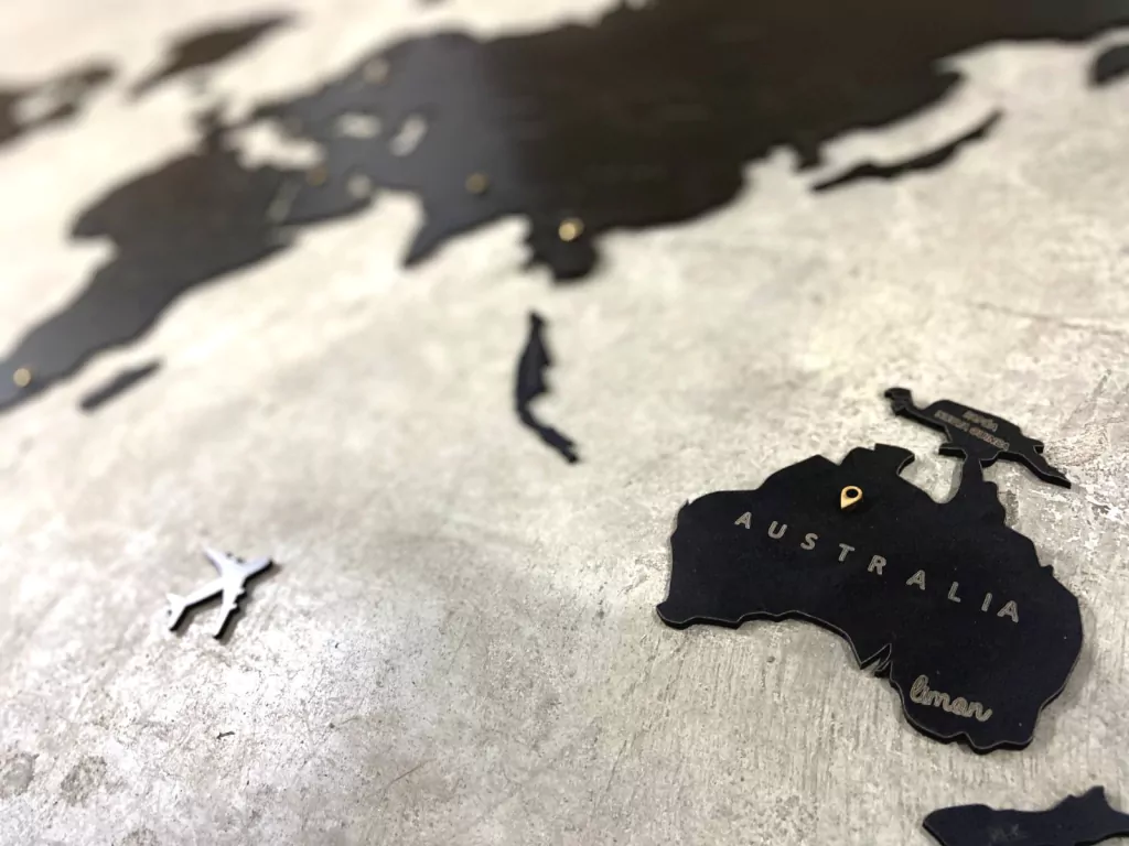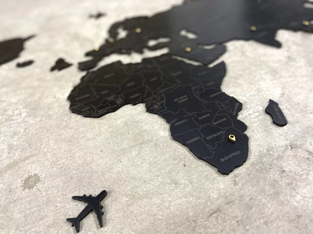 Nuestro mapa 3D con division politica + nombres de paises crea un efecto de relieve sobre la pared que queda precioso. No es in vinilo. Lo hacemos en madera fibro plus de 3mm de espesor dandole un detalle único a tu pared.Los nombres son grabados láser con maxima precision.